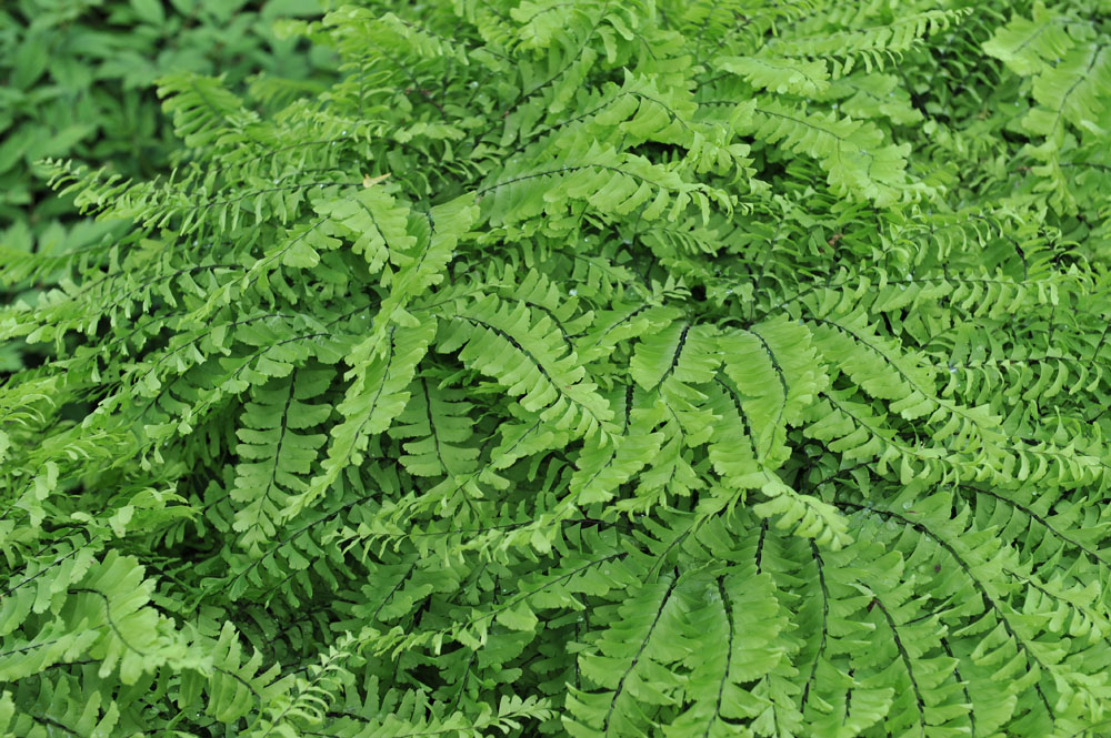 Adiantum aleuticum ‘Japonicum’ – Adiantum pendatum aleuticum ‘Japonicum’ – Five-finger Maidenhair Fern – Western Maidenhair fern – This species from Western North America grows 30” inches tall and in breadth and is semi evergreen to deciduous. Sends out short rhizomes and broadly egg shape to kidney-shape pendent pale to mid green on fronds 8-12” long with oblong segments and black stalks and midribs. Has golden red new fronds maturing to green.