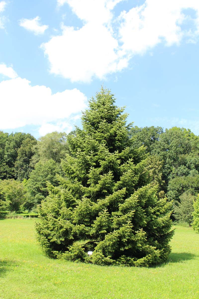 A. cilicica – Cilician Fir – This columnar to conical crown tree is native to southeastern Turkey, Northern Syria and Lebanon, and grows to 100 feet and 20’ feet wide. The inch and half long leaves are bright green with grayish white undersides. The needles grow along the upper surface of the branches pointing to the tip. The cones are cylindrical 2 ½-8 inch long greenish brown cones.