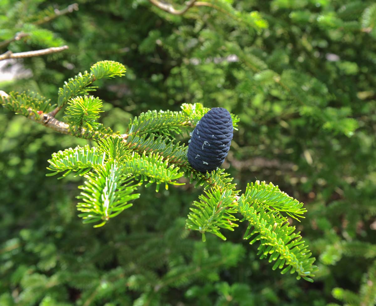 A. fargesii – A. Sutchuenensis – Fargesii Fir –This statue like tree that grows up to 60 feet and 12 feet across and is form Central China. The flaky bark is a really distinctive pale brown and deep purple. The needles are green with silver stripe underside about an inch long. The oval cones are violet-purple in color 3 inches long.