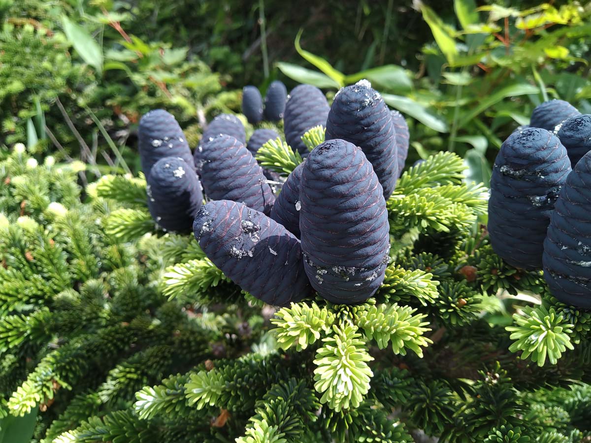 A. homolepis – Abies brachyphylla – Manchurian Fir – Nikko Fir –Form southern and central Japan but is found in Europe and North America and is more tolerable to urban pollution then others species. It can grow 90’ or more feet tall and 25 feet wide in cylindrical shape. It has dark green needles with a broad blue-white band on the underneath with blunt tips and 1 ½ inch long. The cones are purplish. The shrub sized cultivars ‘Prostrata’lacks leading shoots and is propagated by cuttings