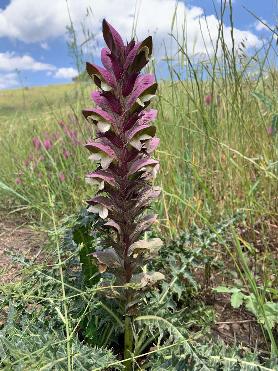 Genus of 30 species of perennials originating form dry rocky sites in the Mediterranean. These are vigorous grower with architectural features. With bold striking foliage and flowers. The 36” long leaves are dark green, lance-shaped, rounded to egg shape forming at the base and variously lobed and toothed and sometimes spiny. On 4-foot tall stems it bears 2-lipped flowers about 1 ½-2” long with spiny bracts with leave segments in combination of white, green, yellow, pink, or purple.