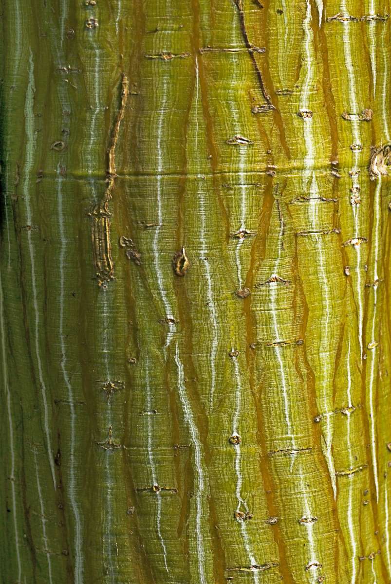 Acer davidii – Father David’s Maple – pere David Maple – Named after French naturalist and missionar Armand David who discovered it in China. It grows 50’ feet tall and in breadth with gray and white striked bark. The oval 6 inch mid green leafs can be shallowly lobed or unlobed turning orange to yellow in autumn when it bears pink-brown fruit. It bears clusters of pale yellow flowers on a single stem.