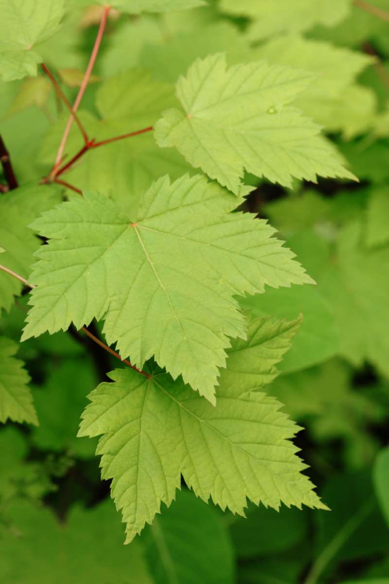 Acer glabrum – Rock Maple – Rocky Mountain Maple – Found throughout the Rockies Mountains. This large shrub or small tree is multi-stemmed from the base and grows 20’ feet tall. The dark green leaves vary from 2-4” inches wide and are 5 lobed in autumn they turn yellow. Needs cold conditions to thrive.