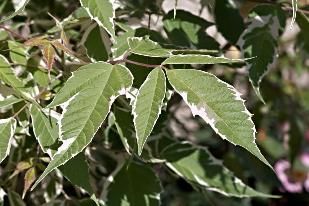 Acer negundo – Box-elder Maple – Box Elder – Manitoba Maple – Ash- Leaved Maple – Found in eastern North America but subspecies are found across America and into Mexico and Guatemala where it inhabits moist riverbanks. This fast growing deciduous tree can reach 50’ feet tall and with a 30’ foot spread but colored species are smaller and less vigorous. All varieties have compound leafs with 3-7 large leaflets 8” inches long. Bears greenish yellow flowers on hanging single common branch. Tolerates poor conditions but branches break easily in high winds. Leaves turn yellow in autumn. Should plant only one Acer negundo in a garden because they easily breed and become a naissance.