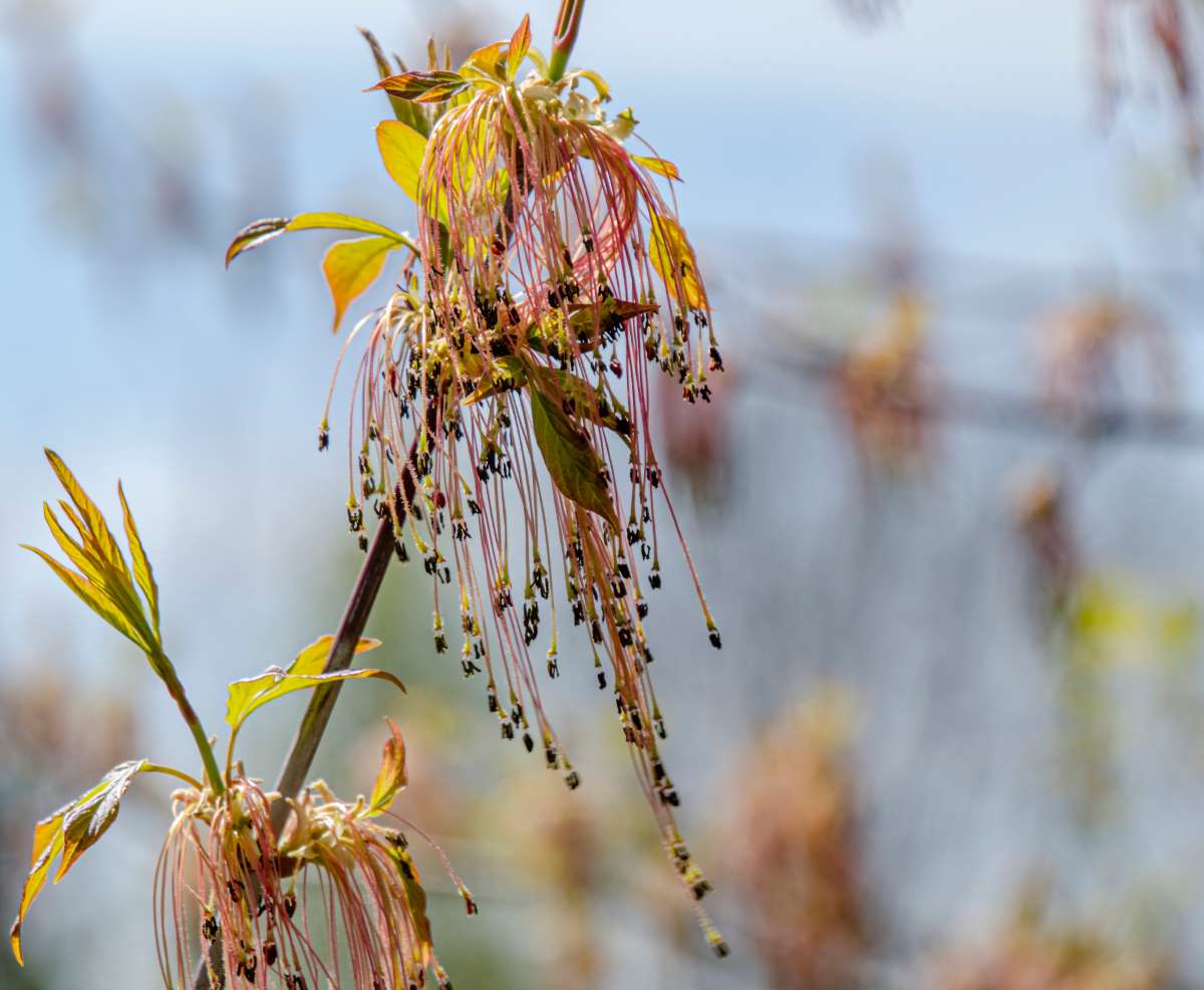 Acer negundo – Box-elder Maple – Box Elder – Manitoba Maple – Ash- Leaved Maple – Found in eastern North America but subspecies are found across America and into Mexico and Guatemala where it inhabits moist riverbanks. This fast growing deciduous tree can reach 50’ feet tall and with a 30’ foot spread but colored species are smaller and less vigorous. All varieties have compound leafs with 3-7 large leaflets 8” inches long. Bears greenish yellow flowers on hanging single common branch. Tolerates poor conditions but branches break easily in high winds. Leaves turn yellow in autumn. Should plant only one Acer negundo in a garden because they easily breed and become a naissance.