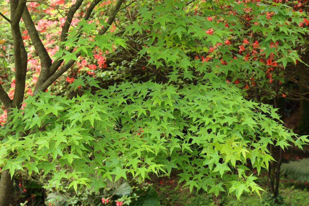 Acer oliverianum – This deciduous tree from Central and eastern China and Taiwan is a small tree or large shrub that grows 12-25’ feet tall with a graceful spreading crown up to 30’ feet wide. It has mid green leaves similar to Acer palmatum but slightly larger up to 5 inches long and more finely toothed with 5 radiating lobes. The winged fruits are an inch-by-inch and angled pairs. Young shoots are purplish green. Bears pale yellow flowers. In autumn turns yellow orange or deep bronze.
