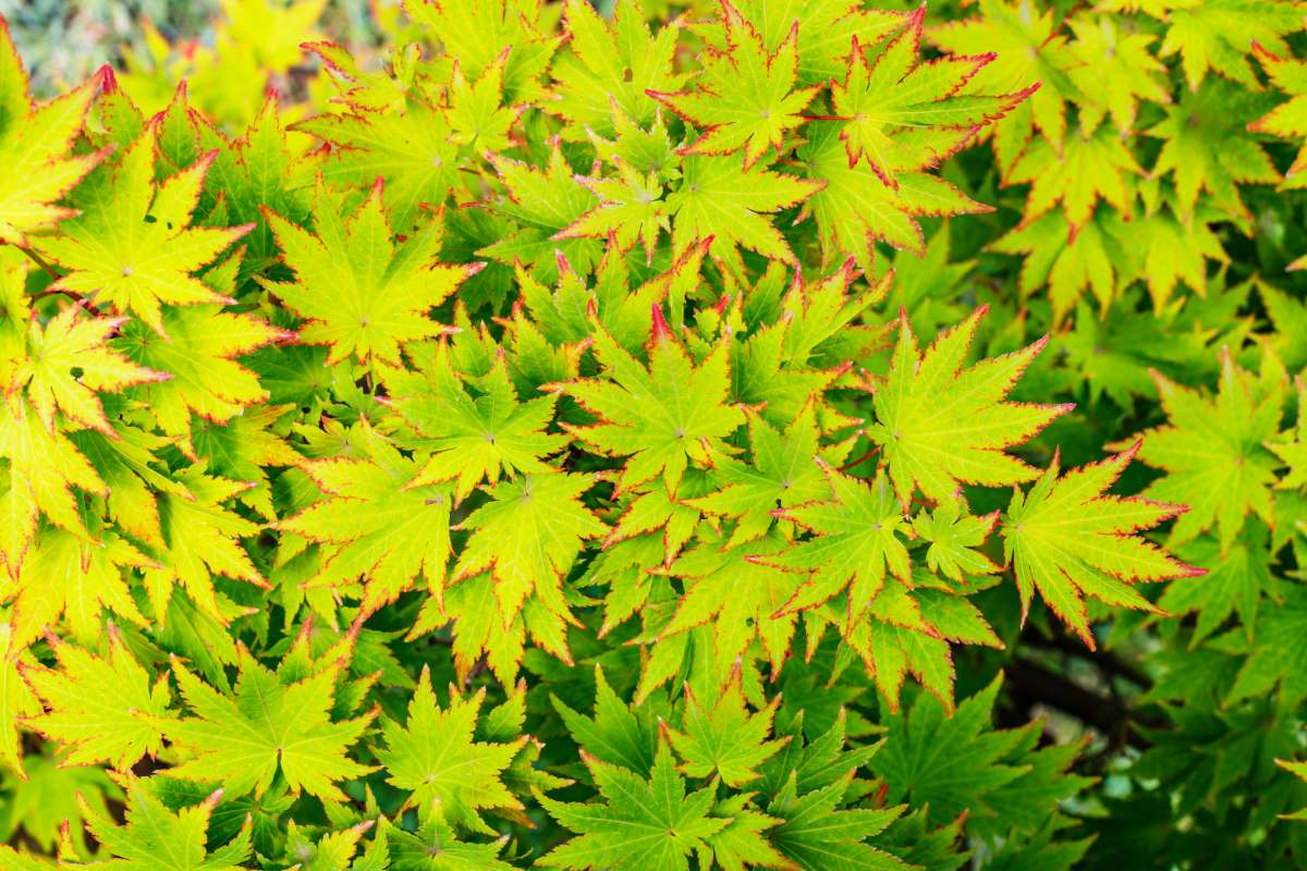 Acer sieboldianum – Native to Japan, this broadly spreading rounded habit tree grows 30’ feet tall. It bears 7-11 serrated lobes cut almost to base and are pale green 2 ½-3” long with fine hair on the undersides. As the leaves aged they turn darker green then in autumn turn bright red. Flowers clusters are yellow.