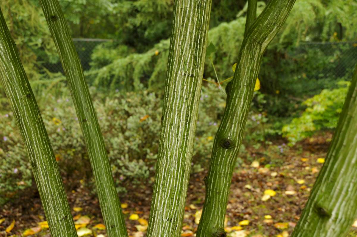 Acer tegmentosum – Grows 25’ feet tall and 30’ feet wide and derives from the moist soils of Russia, North Korea, and Manchuria. Young shoots and foliage are bluish. This deciduous tree has green barked striped with white. It produces, oval 3-5 lobed leafs, 6” inches long. Flowers and fruits hang in pendulous clusters.
