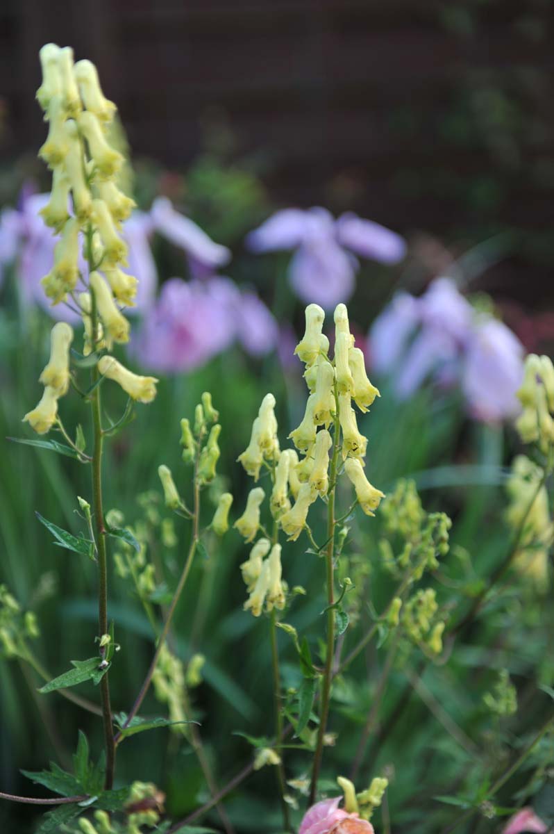 Aconitum lycoctonum subsp neapolitanum – Aconitum lamarchii – Aconitum neapolitanum – Acontonicum pyrenaicum – found from the Pyrenees to the Balkans it grows 4’ feet tall and has 7-8 lobed leaves bearing large racemes or panicles of yellow hooded flowers in mid and late summer.