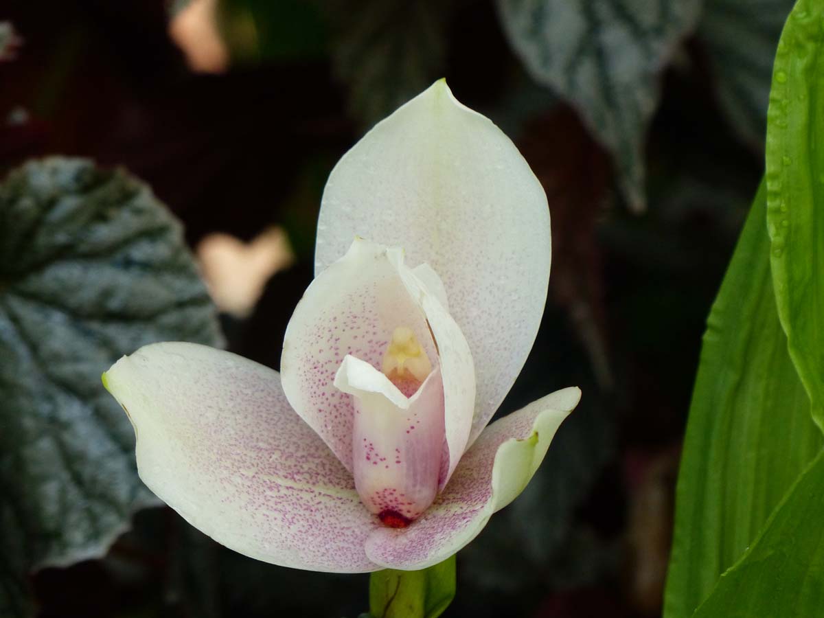 This cross between Anguloa and Lycate is a deciduous orchid. It produces conical pseudobulbs and broadly lance shaped soft folded leaves to 24” or more long. Cultivated for their large solitary tulip like flower borne in early summer.