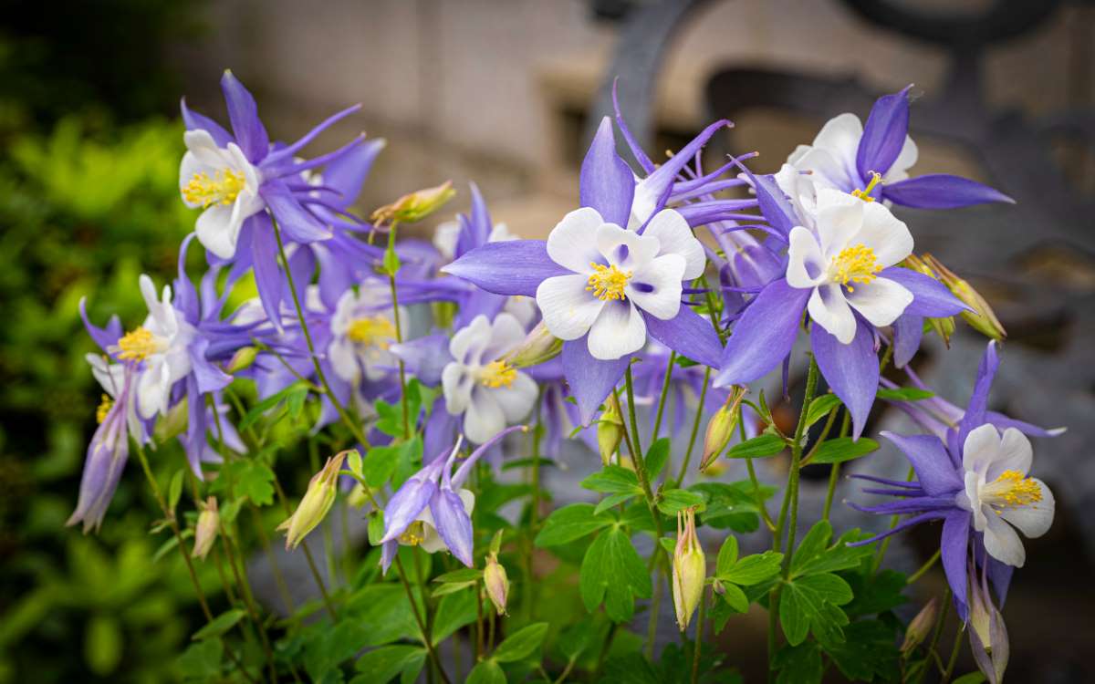 There are around 70 species of graceful clump forming perennials, in this genus. They occur from meadows, open woodlands, and mountainous areas in Europe, North America, and temperate regions of Asia. Columbine comes from the Latin word for dove, as the flowers were thought to resemble a cluster of doves. They produce basal rosettes of long stalked deeply 3-lobed or ternate to 3 ternate often blue-green or blue-gray fern like leaves the leaflets are mostly egg shape or rounded wedge shaped at the bases often shallowly or deeply divided into 2 or 3 lobes. In late spring and early summer distinctively spurred bell shaped flowers usually 1-4” long with colorful tepals and spurred petals are carried singly or in short panicles on branching leafy stems.