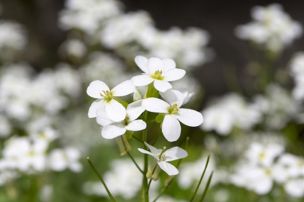 There are over 120 species of annuals and evergreen perennials form rocky or mountains areas of Europe, Asia, and North America, in this genus. They’re erect or mat or cushion forming species reaching about 3’ feet tall. They spreads by short rhizomes. From often a woody-based stem they bear simple, toothed or smooth edged and sometimes hairy, spatula shaped leaves. In spring and summer it bears cross shaped 4 petaled white to purple flowers are borne in racemes 1 ¼-3” long. Great in a rock garden, wall or crevices.