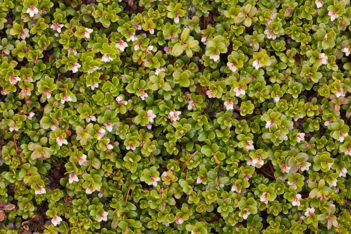 Arctostaphylos uva-ursi –Common Bearberry – Kinnikinick – This low growing or prostrate shrub from Northern Eurasia and North America grows 4” tall and spreads to 20” wide. It produces small egg shaped, leathery, dark green leaves ¾-1 ½” long. In late spring and summer it bears small racemes ¾-1 ¼” long of globular pink tinted white flowers. In autumn it bears bright spherical green fruit that ripen to scarlet. The foliage takes on red tones in autumn. Great plant for cascading over walls or embankments.