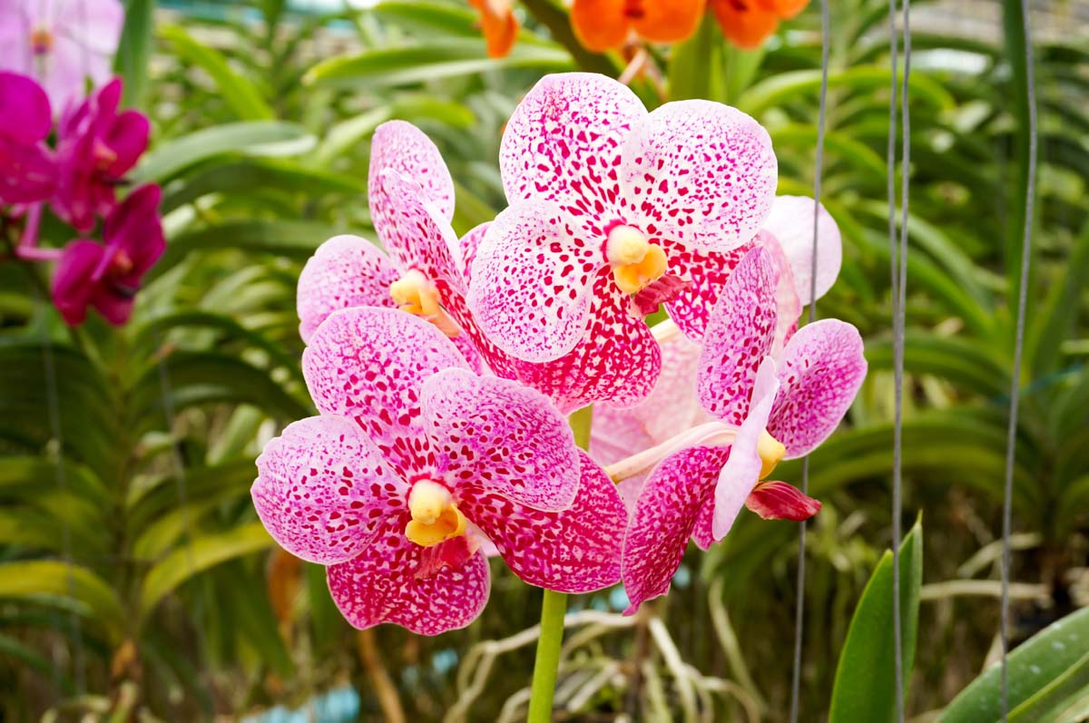 This is a cross between Ascocentrum and Vandal orchids from Burma, India and the Philippines genus consist of several hundred compact evergreen epiphytic orchids usually grow to 24” tall in an upright habit produces semi-rigid, narrowly oval light to mid green leaves. They bear long lasting axillary racemes of 6-8 or more delicate 2” wide open flowers are produced freely over long periods of year although mainly in winter and sometimes in summer. Flowers are richly colored in any color except green and attractively overlaid with contrasting colors.