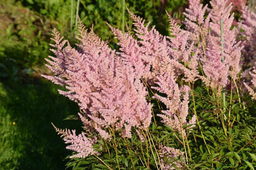 Astilbe chinensis and Astilbe chinensis var, davidii hybrids are low growing usually 6-10” tall or 30-54” high