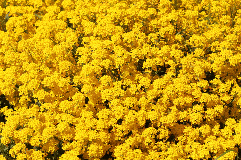 Aurinia saxatilis ‘Gold Dust’ – Alyssum saxatile ‘Gold Dust’ – Basket of Gold – Cloth of Gold – Gold Dust – This loose mound forming evergreen, perennial and grows 12” tall and spreads to 12” wide. It produces rosettes of obovate, occasional pinnatifid, toothed, hairy gray-green leaves 1 ¼-3” long. In spring and early summer it’s smothered with dense panicles of deep golden yellow flowers to ½” wide.