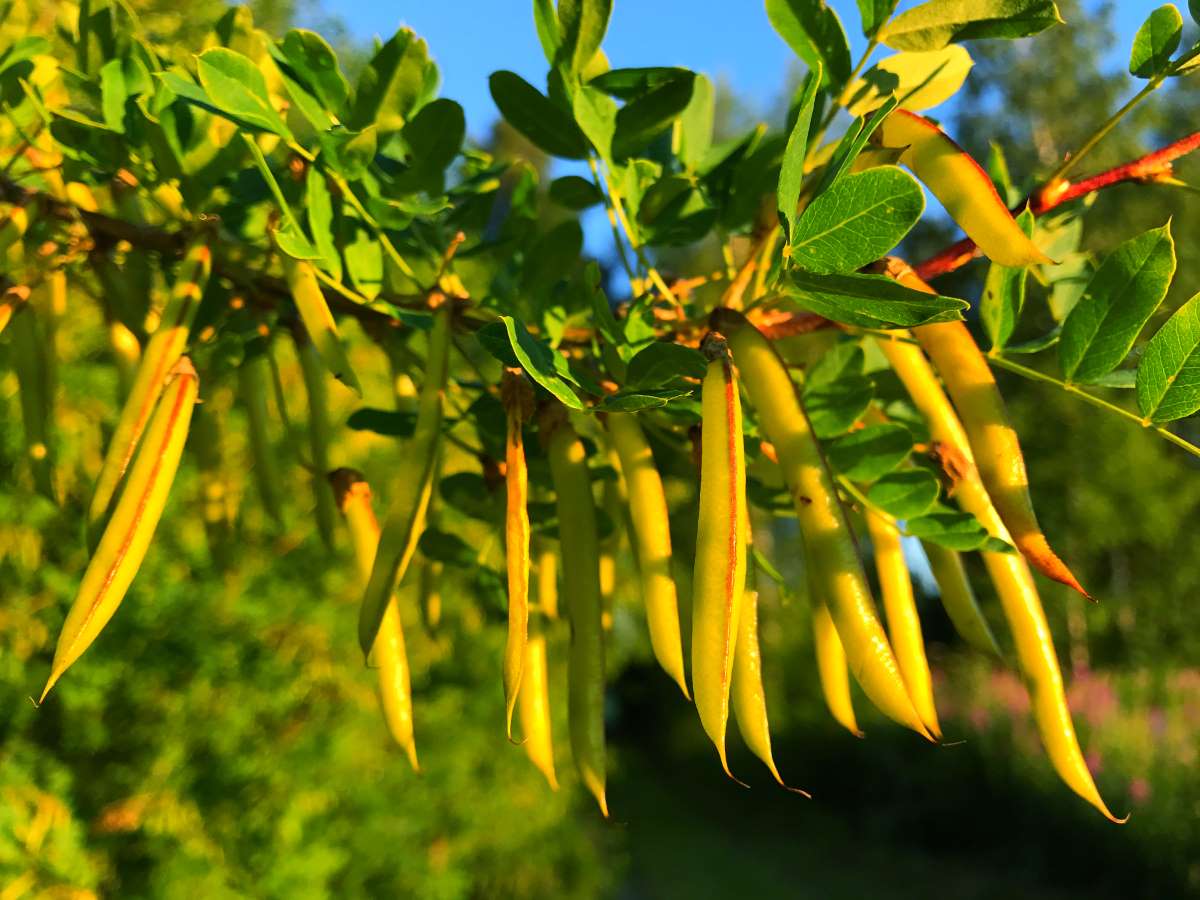 C. arborescens – Siberian Pea Tree – Siberian Pea Shrub – This erect, thorny shrub or small tree from Russia, Northern China, Siberia and Mongolia grows 10-20′ feet tall and 12′ feet wide. It produces pinnate, soft, fresh green leaves, 2-3″ long, composed of up to 12 elliptic, bristly tipped leaflets. Stems are covered with very fine hairs. From late spring to early summer it bears pale yellow flowers, to 3/4″ long, are carried singly or in small clusters.