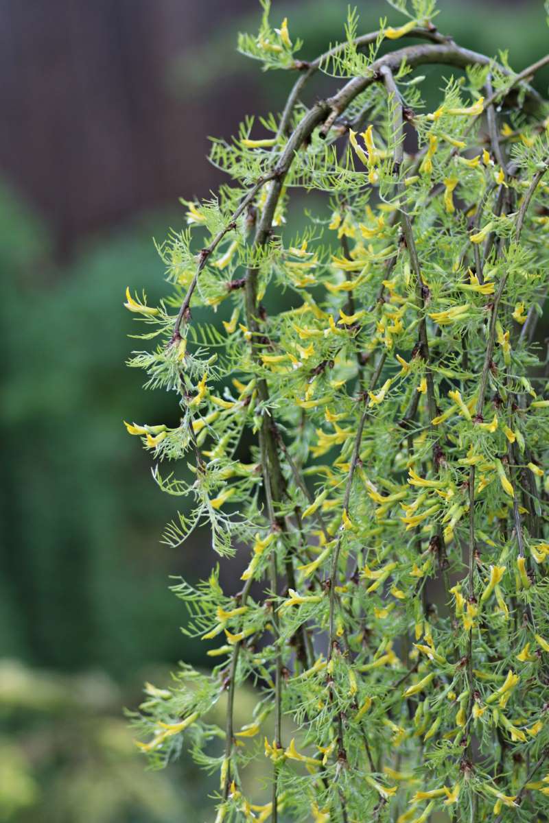 C. arborescens ‘Walker’ – Siberian Pea Tree – Siberian Pea Shrub – This erect, thorny shrub grows 5′ feet tall and 3′ feet wide. It produces pinnate, soft, fresh green, fern like leaves on pendent shoots. Stems are covered with very fine hairs. From late spring to early summer it bears pale yellow flowers, to 3/4″ long, are carried singly or in small clusters.