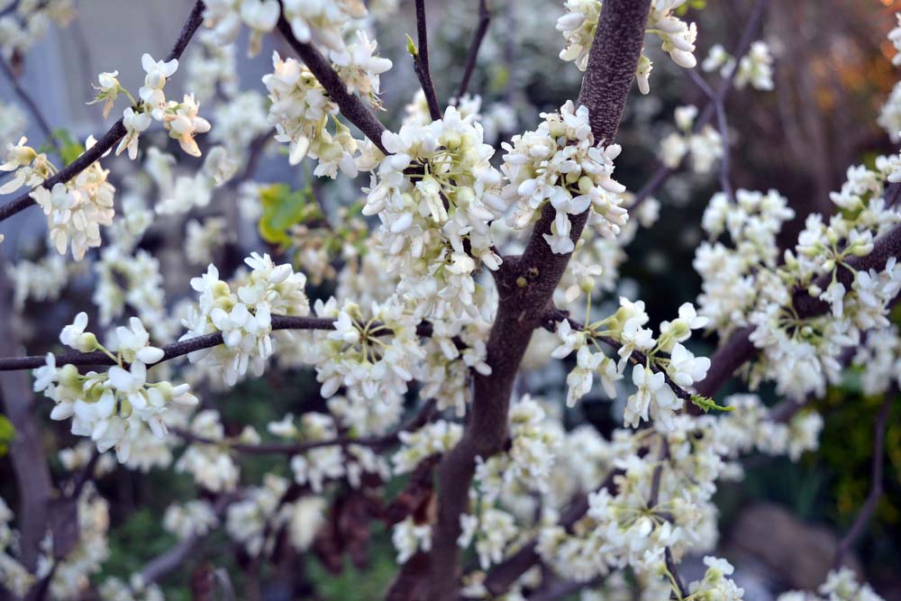 C. canadensis – Eastern Redbud – This slow growing, spreading, often multi stemmed tree from North America grows 30-40′ feet tall and 30′ feet wide in the wild, in cultivation 12′ feet tall is more likely.It produces deep rose buds which emerge from heart shaped leaves, with a distinct pointed tip, to 4″ long, bronze when young, turning yellow in autumn.On bare stems, before the leaves it bears deep crimson, purple to pink, or occasionally white flowers, to ½” long, are carried in clusters of 2-8.The fruits mature in summer to reddish brown in color.