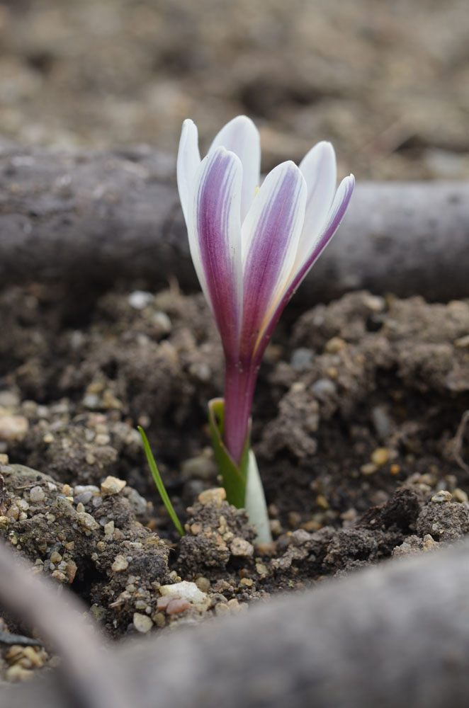 C. kesselringii – C. crociflorum – This cormous perennial from Central Asia grows 1″ tall. It produces semi erect, linear-lance shaped leaves, ½-3/4″ long at flowering, 3-4″ long when mature. In late winter and early spring it bears up to 4 funnel shaped white flowers, with tepals ½-1 11/4″ long, striped or suffused, purple outside.