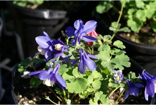Aquilegia flabellate – Aquilegia akitensis – Fan Columbine – This hardy alpine perennial from Japan and Korea grows 4-18” tall and 4-6” wide. It produces ternate or 2 ternate blue-green leaves divided into leaflets ½-1 ½” long. In early summer it bears terminal semi-erect to nodding soft blue-purple flowers, with 1 or 2 per stem with white or cream petal tips and short hooked spurs to ¾” long. Requires moist soil and partial shade.