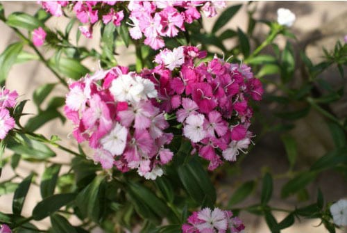 Ranging from fully to marginally frost hardy, Dianthus species like a sunny position, protection from strong winds, and well drained, slightly alkaline soil. Stake taller varieties. Prune after flowering.