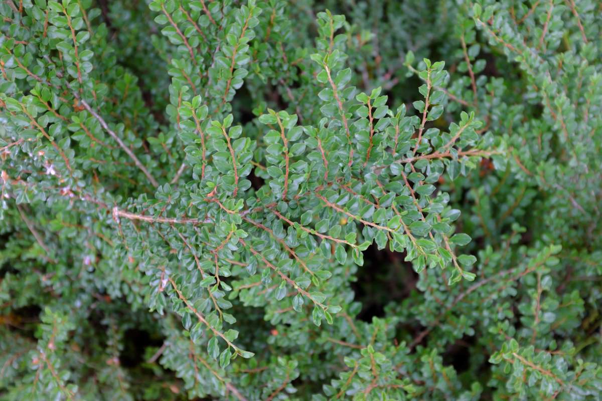 C. adpressus – Creeping Cotoneaster – This low, prostrate, deciduous shrub from Western China grows 12″ tall and 5-6′ feet wide, rooting wherever it touches the ground. It produces broadly ovate to obovate, wavy edged, dull green leaves, ½” long, turning red in autumn. In summer it bears reddish white flowers, carried singly or in pairs, followed by spherical, bright red fruit, to 1/4″ long.