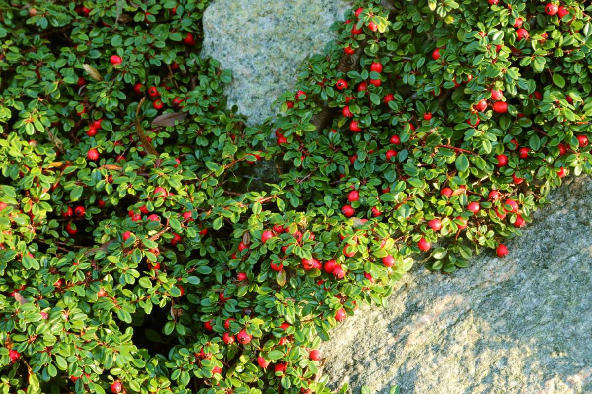 There are about 200 species of deciduous, semi evergreen, or evergreen shrubs, rarely small trees, in this genus. They occur from woodland and rocky areas in North temperate region of Europe, Asia, and Northern Africa. They have alternate, simple, lance shaped to narrowly elliptic or rounded, broadly ovate, smooth edged leaves. They bear 5 petalled, saucer to shallowly cup shaped, white to deep pink, sometimes red flowers, held singly or in cymes from spring to summer, are followed in autumn by ornamental, spherical to ovoid or obovoid red or black berries. Grow in a shrub border or as a hedge or screen, some are ideal for wall training. Dwarf species are suitable for a rock garden. Many prostrate species provide good groundcover, some may be trained as weeping standards. Seed may cause mild stomach upset if ingested.