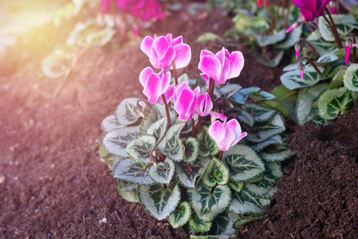 Cyclamens vary from frost tender to very frost hardy. They should be planted in light, fibrous soil, rich in organic matter with good drainage and sun or part shade. Water regularly during growth but allow to dry out during summer. The tubers are best left undisturbed and should grow larger each year, flowering more abundantly each season.