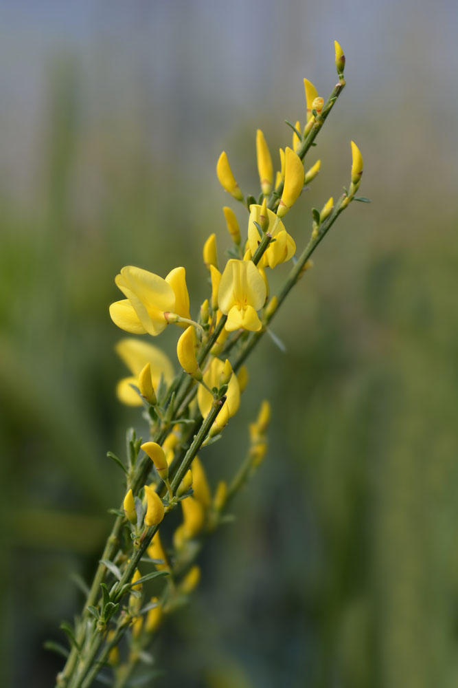 There are about 50 species of deciduous to evergreen prostrate shrub, shrubs and rarely small trees, in this genus. They occur in Europe, Mediterranean, Western Asia, and North Africa, found in well drained soils, usually in open sites, from high mountains to scrub and heathland at lower altitudes. Brooms have alternate, usually 3 palmate, occasionally simple, mostly mid green leaves, but are occasionally simple, mostly mid green leaves, but are occasionally leafless when mature. They are grown for their usually, abundant yellow, pea like, sometimes very fragrant flowers, carried on current seasons growth, singly or in terminal or leafy, axillary racemes or clusters. Flowers are followed by linear or oblong, usually mid green, often hairy, hard coated, seed pods. The smaller species and cultivars are suitable for a rock garden or raised bed. Grow larger brooms in a shrub border, use prostrate variants as a ground cover.