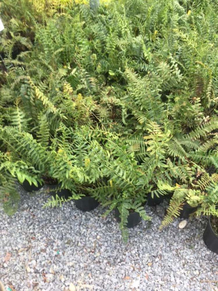 P. acrostichoides – Christmas Fern – This terrestrial, evergreen fern from Northeastern North America grows 18-30″ tall and 36″ wide. It produces shuttlecock of narrowly lance shaped, pinnate, dark green, leathery fronds, 24″ long, with small pinnae. Fronds emerge silvery white and mature to dark green. Fertile fronds narrow abruptly toward the tips where the sori occur.