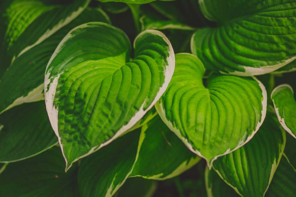 Hosta F. Aureomarginata’ – H. ‘Obscura Marginata’ – has ovate to heart shaped, leathery, distinctly veined, deep olive green leaves, 8-10″ long, with irregularly edge yellow. The flowers are borne freely on stems 34″ long, in summer. Tolerates sun or partial shade.