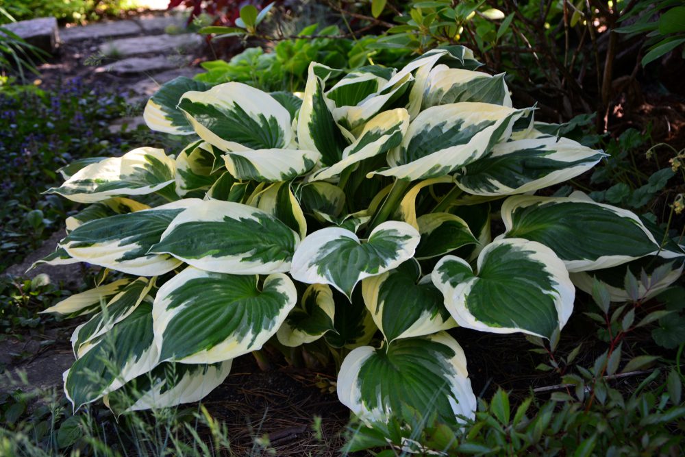 There are about 70 species of mostly clump forming, occasionally rhizomatous or stoloniferous perennials, in this genus. They occur from sunbaked cliffs, rocky stream sides, woodland, and alpine meadows in China, Korea, Japan, and Eastern Russia. Numerous hybrids have also been developed, mainly in the USA. Hostas are grown primarily for their bold foliage, produced in dense mounds of overlapping, ovate to heart shaped or lance shaped leaves. The leaves may be green, yellow, gray-blue, or variegated, and are often glaucous. One sided racemes of bell, trumpet or spider shaped flowers, to 1 1/4″ long, are borne on usually leafless sometimes leafy stems, mainly in summer. They are followed by oblong, green, later brown seed capsules. Plant height given in the description below refer to the mounds of foliage, flower stems heights, are given separately.