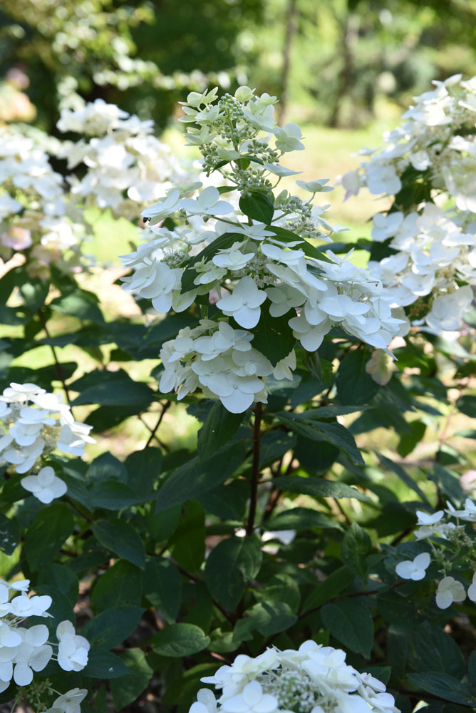 H. paniculata ‘Pee Wee’ – Panicle Hydrangea – is dwarf and compact growing 5′ feet tall and wide and bears abundant white flowerheads