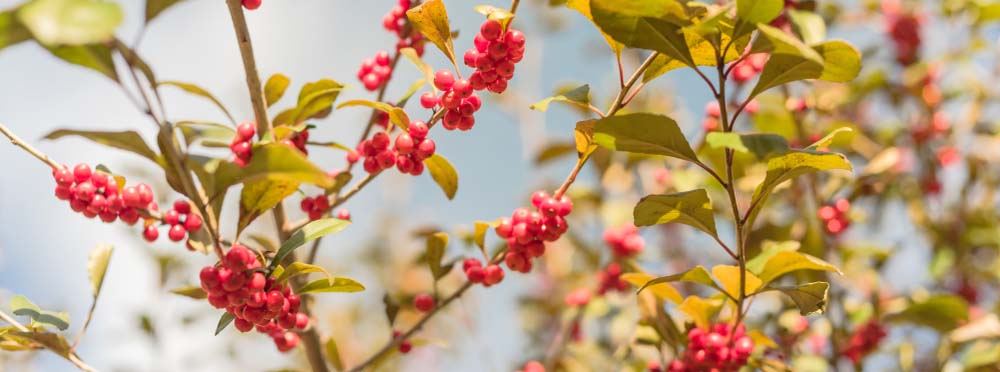 I. verticillata ‘Winter Red’ – Black Alder – Winterberry – Coral Berry – Michigan Holly – This vigorous, deciduous, suckering shrub or sometimes a small tree from Eastern North America grows 8-10′ feet tall and 10′ feet wide.It produces obovate or lance shaped, toothed, dark green leaves, 1 1/4-4″ long, with long, sharp pointed tips, soft down or felting beneath and are purple tinged in spring and yellow in fall.In mid spring it bears white flowers, followed by abundant, long lasting, stalkless, spherical, intensely red fruit, to 3/8″ across, usually hang on to spring .It tolerate wet conditions.