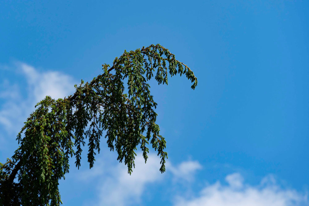 J. communis ‘Pendula’ – Common Juniper – This slow growing, shrub with very graceful weeping branches, from the Northern Hemisphere. It produces linear, sharply pointed leaves that are green needles, with single, glaucous white bands on inner faces, are carried in three’s. Ovoid or spherical fruit, green when first produced, ripen to glaucous blue then black over 3 years and used for flavoring gin.