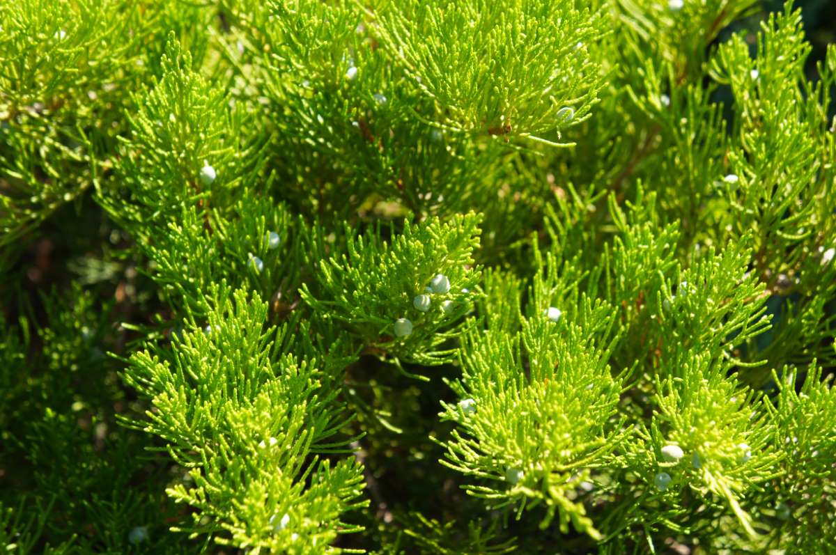 There are about 60 species of slow growing and long lived, coniferous shrubs and tall trees in this genus. They are the most drought hardy genus of all conifers. They occur from dry forest and hillsides throughout the Northern Hemisphere. Juvenile leaves are usually needle like or narrowly wedge shaped, and ¼-½” long. Adult leaves are usually scale like and overlap, either lying flat along the shoots or spreading, and 1/16-¼” long. Both juvenile and adult leaves exude a pungent, somewhat pleasant smell when crushed. In most cases, male and female cones are borne on separate plants: male cones are spherical to ovoid, yellow, and to ¼” across, females develop into usually spherical, fleshy, berry like fruits, 1/8-½” across, with 1-10 seeds, and are persistent, generally ripening over 2 to 3 years. Junipers tolerate to a wide range of soils and conditions, and are useful for hot, sunny sites. Use as specimen plants in a rock garden and prostrate species as a groundcover. Contact with the foliage may aggravate skin allergies.
