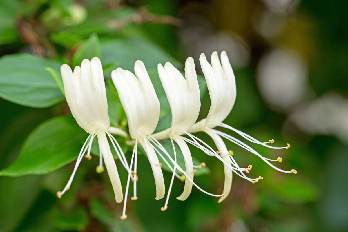 There are about 180 species of deciduous and evergreen shrubs, groundcovers, and twining climbers in this genus. They are widely distributed in the Northern Hemisphere, where they grow in varied habitats ranging from woodland and thickets to rocky places. They are grown for their tubular to funnel shaped, often sweetly fragrant flowers, which are usually 2 lipped or have 5 small, spreading lobes. The leathery leaves are held in opposite pairs, up to 6″ long and usually simple. Honey suckles may be grown in a variety of situations: train climbers on a wall or fence, or into a a large shrub or small tree, grow shrub in a shrub border, or use for hedging or as a groundcover. Some species may become invasive. The berries may cause mild stomach upset if ingested. Honeysuckles are attractive to bees and birds.