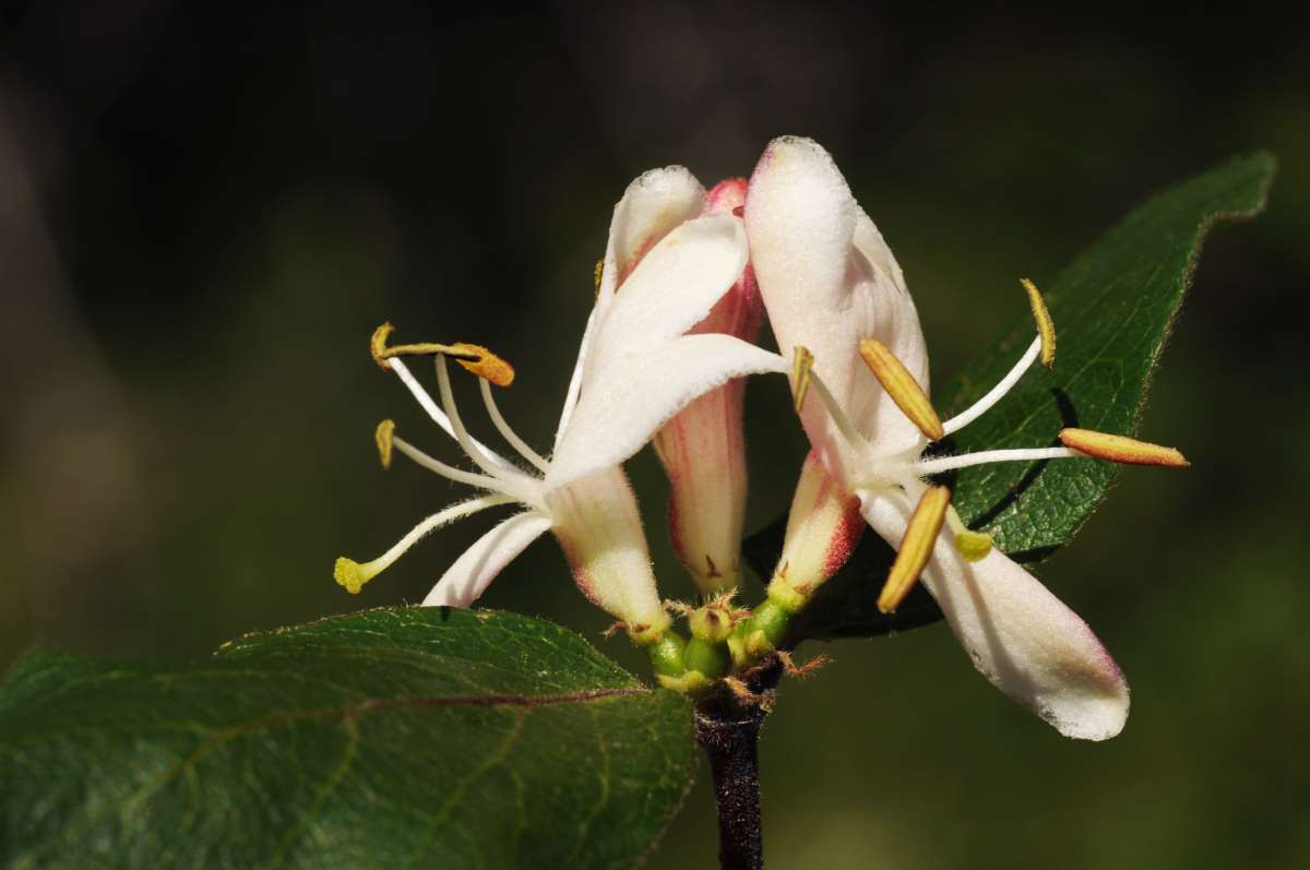 L. iberica – This deciduous shrub from the Caucasus to Northern Iraq and Iran grows 6′ feet tall. It has 2″ long dull green leaves with lighter undersides, and in early summer it bears pairs of short tubed pale yellow to white flowers. Small bright red fruits follow.