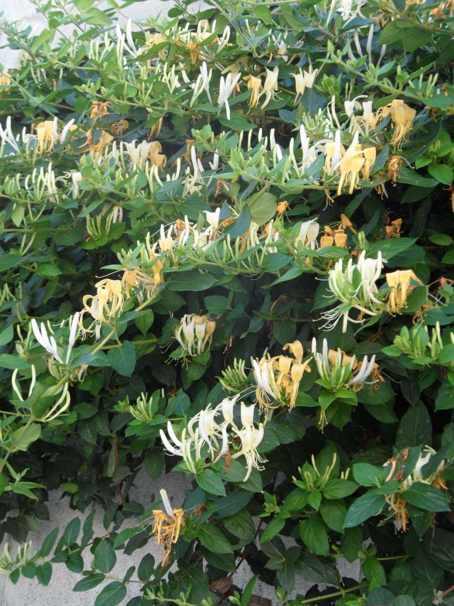 There are about 180 species of deciduous and evergreen shrubs, groundcovers, and twining climbers in this genus. They are widely distributed in the Northern Hemisphere, where they grow in varied habitats ranging from woodland and thickets to rocky places. They are grown for their tubular to funnel shaped, often sweetly fragrant flowers, which are usually 2 lipped or have 5 small, spreading lobes. The leathery leaves are held in opposite pairs, up to 6″ long and usually simple. Honey suckles may be grown in a variety of situations: train climbers on a wall or fence, or into a a large shrub or small tree, grow shrub in a shrub border, or use for hedging or as a groundcover. Some species may become invasive. The berries may cause mild stomach upset if ingested. Honeysuckles are attractive to bees and birds.