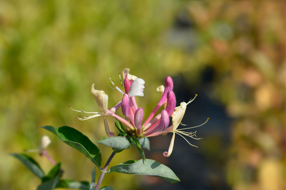 There are about 180 species of deciduous and evergreen shrubs, groundcovers, and twining climbers in this genus. They are widely distributed in the Northern Hemisphere, where they grow in varied habitats ranging from woodland and thickets to rocky places. They are grown for their tubular to funnel shaped, often sweetly fragrant flowers, which are usually 2 lipped or have 5 small, spreading lobes. The leathery leaves are held in opposite pairs, up to 6″ long and usually simple. Honey suckles may be grown in a variety of situations: train climbers on a wall or fence, or into a a large shrub or small tree, grow shrub in a shrub border, or use for hedging or as a groundcover. Some species may become invasive. The berries may cause mild stomach upset if ingested. Honeysuckles are attractive to bees and birds.