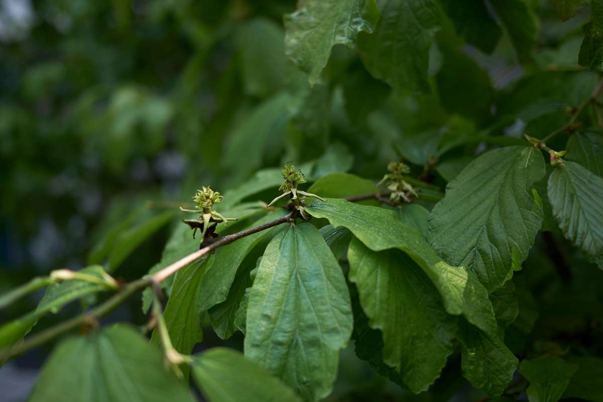 P. persica – Iron Tree – Persian Ironwood – Persian Parrotia – This dense, deciduous, spreading, short trunk tree from the Caucasus and Northern Iran grows 25-40′ feet tall and 20-30′ feet wide. It has flaking/peeling, gray and yellowish-brown bark when mature. It produces alternate shallowly toothed, diamond shaped, glossy, rich green, somewhat leathery leaves to 5″ long and 3″ wide, and turn yellow, orange, and red purple in autumn. In late winter or early spring before the leaves it bears tiny, spider like red flowers, held in spherical clusters, ½” across.