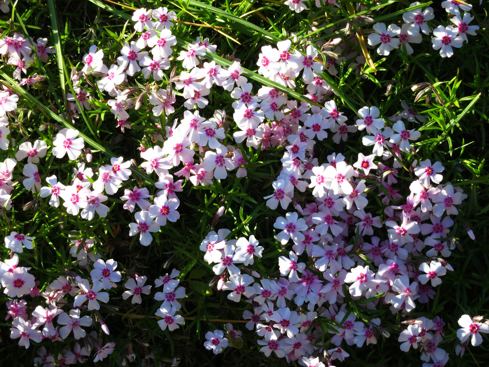 P. subulata ‘Coral Eye’ – Moss Phlox – This dense, evergreen perennial forming cushions or mats is form Eastern and Central USA and grows 2-6″ tall and at least 20″ wide. It produces hairy, linear to elliptic, bright green leaves, up to 3/4″ long. In late spring and early summer it bears salverform, white flowers, each with a striking coral eye, to 1″ across, often with star shaped petal lobes are held in few flowered cymes, rarely singly.