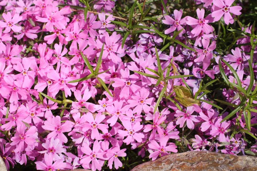 P. subulata ‘Emerald Pink’ – Moss Phlox – This dense, evergreen perennial forming cushions or mats is form Eastern and Central USA and grows 2-6″ tall and at least 20″ wide.It produces hairy, linear to elliptic, bright green leaves, up to 3/4″ long.In late spring and early summer it bears salverform, soft pink flowers, to 1″ across, often with star shaped petal lobes are held in few flowered cymes, rarely singly.