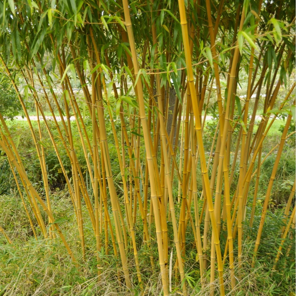 There are 75-80 medium sized to large, evergreen bamboos in the Poaceae family, in this genus. They occur in deciduous woodland and groves in Eastern Asia and the Himalayas where some can reach 100′ feet tall. They have branching habit and spreading rhizomes, although in cool temperate climates they usually form compact clumps. The culms are hollow and grooved, and often zigzag from node to node on young plants. Leaves are yellow green or light to dark green, narrowly lance shaped, and checkered.. Valued for their elegant form and foliage, some also for their subtly colored culms, they are suitable for containers outdoors, as specimen plants, or in groups among shorter shrubs in a border. They thrive in a woodland garden, and may also be used to create a screen.