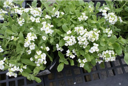 Arabis caucasica – Arabis albida – Arabis alpina subsp. Caucasica – Arabis billardieri – Wall Rock Cress – This easily grown, tough vigorous mat forming evergreen perennial from Southern Europe grows to 6” tall and spread to 20” or more wide. It produces loose rosettes of egg shaped, toothed gray-green leaves 1 ¼-2” long. In late spring it bears loose racemes of scented white flowers to ½” across.