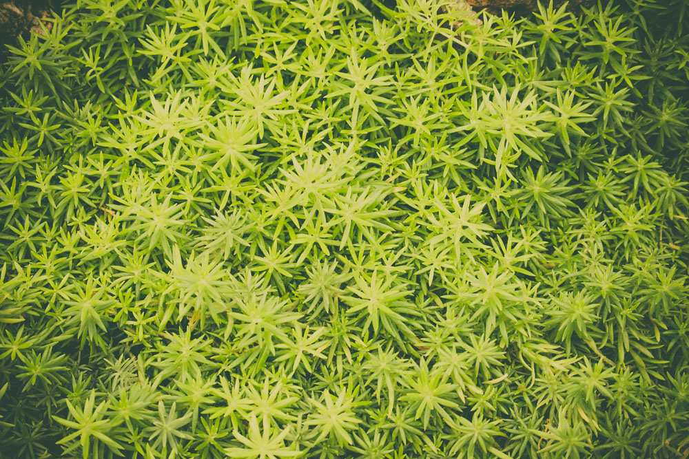 S. acre ‘Aureum’ – Golden Carpet – Golden Moss – Common Stonecrop – This vigorous mat forming, evergreen perennial from Europe, Turkey, and North Africa has been widely naturalized in North America grow 2″ tall with an indefinite spread. From erect or trailing stems that are clothed in overlapping, triangular, bright yellow leaves, to 1/4″ long. Flat topped cymes, ½” across, of tiny, star shaped yellow green flowers, are borne in abundance in late spring or early summer.