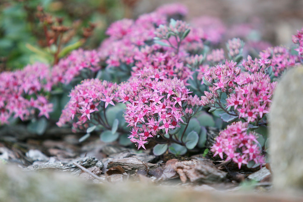 There are about 400 usually succulent annuals and evergreen, semi evergreen, or deciduous biennials, perennials, subshrubs, and shrubs, in the Crassulaceae family, in this genus. They are widely distributed, most are found in Mountains of the Northern Hemisphere, but some in arid areas of South America. Stonecrops are very variable from carpet forming to upright in habit reaching 3′ feet tall, and produce alternate, succulent, opposite, or whorled, fleshy, cylindrical, lanceolate or egg or elliptic al shaped, flattened leaves and usually terminal, often compound, cymes, panicles, or corymbs of generally star shaped and 5 petaled flowers(seldom 4 or 6 petaled), borne mostly in summer and autumn with twice the number of stamens than petals. Grow hardy species in a rock garden or at the front of a herbaceous or mixed border. All parts of the plant may cause mild stomach upset if ingested, contact with the sap may irritate skin.