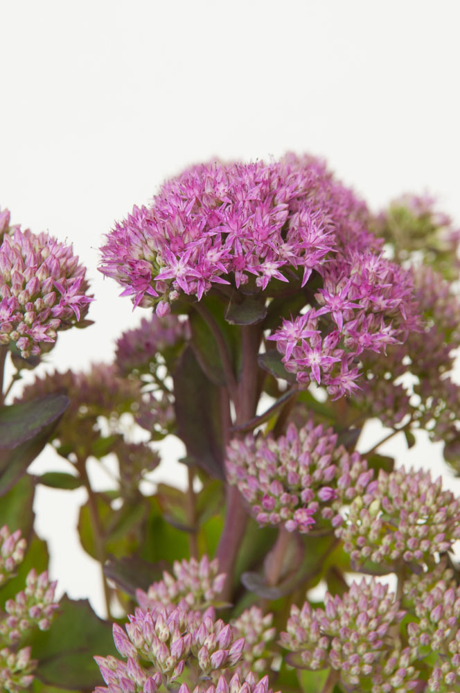 S. telephium ‘Munstead Dark Red’ – Orpine – This clump forming, rhizomatous, deciduous perennial from Europe, Russia, China, and Japan grows 24″ tall and 12″ wide. From erect, unbranched, dark green stems it carries alternate, oblong to oblong-ovate, toothed, glaucous, green leaves, to 3″ long. Dense, axillary and terminal cymes, to 5″ across, of star shaped, dark purplish-red flowers, darkening with age, to ½” across, are borne in late summer and early autumn.