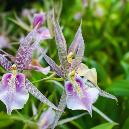 Cool growing orchids (see chart below). Grow in epiphytic orchid potting mix in containers that restrict the roots. IN summer, provide bright filtered light and high humidity, water freely, apply a fertilizer at every third watering, and mist twice daily, In winter, admit full light, water sparingly, provide moderate humidity.